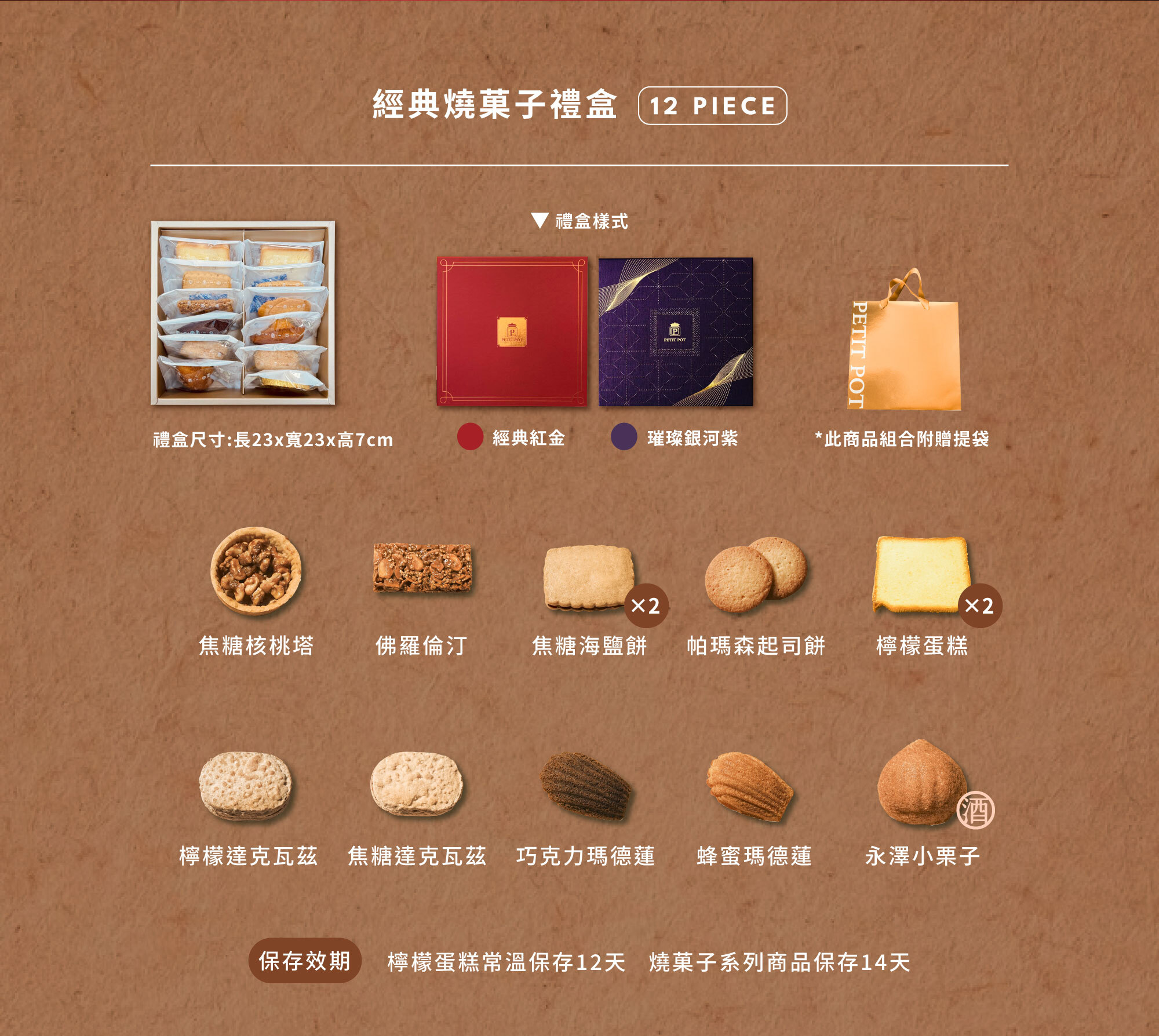 ※保存期限檸檬蛋糕12天其餘商品14天,詳細日期請參考外包裝標籤。
