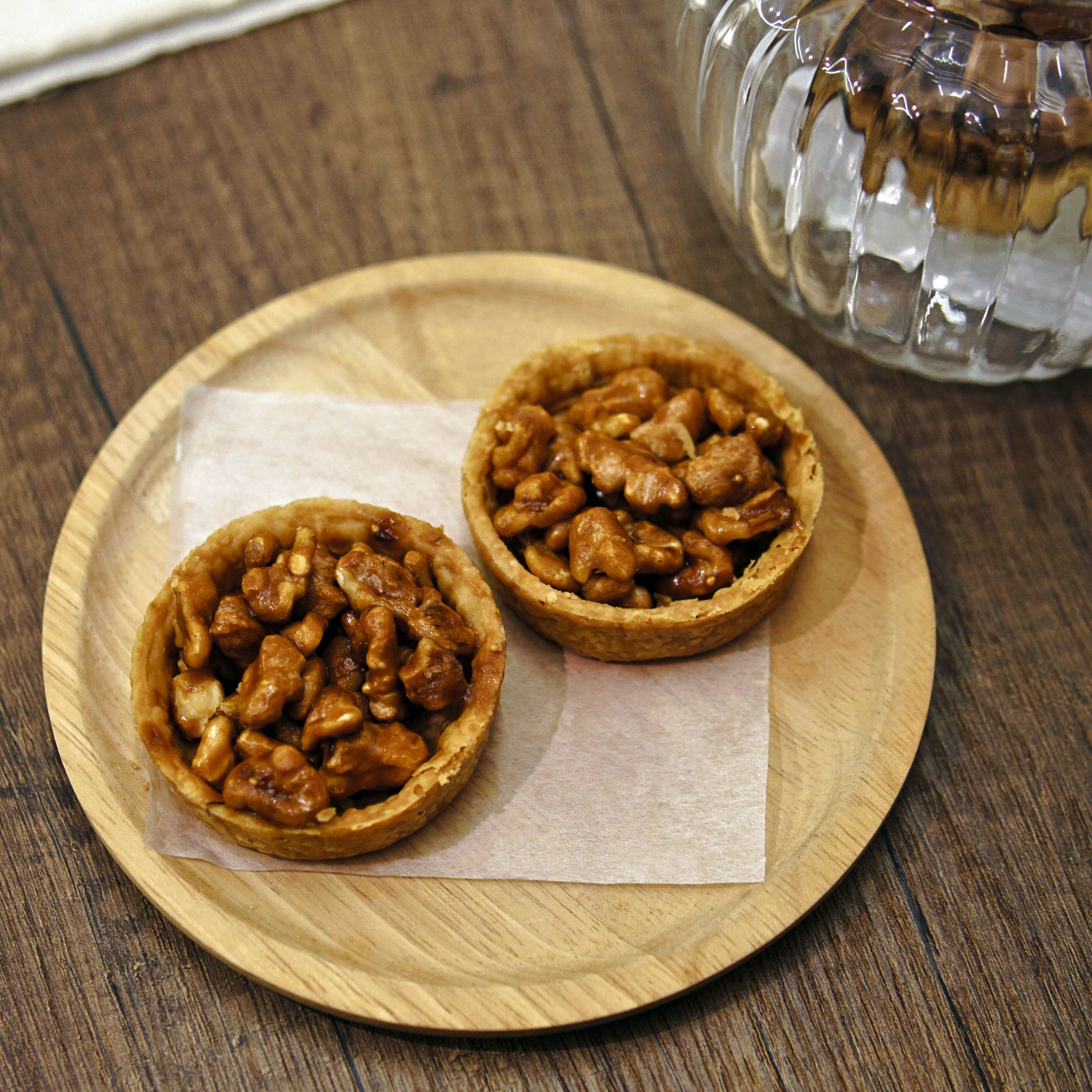 焦糖核桃塔: 糖、核桃、奶油、麵粉、鮮奶油、牛奶、無花果、蜂蜜、香草莢、鹽。過敏原資訊:含有小麥、堅果及牛奶製品